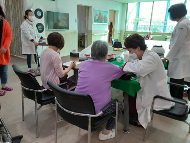 2020년 10월 19일 입소 어르신과 전 직원의 참여하에 2020년 건강검진과 독감예방접종을 실시하였습니다.