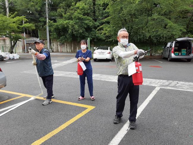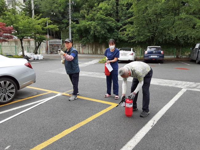 소화전, 소화기 사용법과 화재시 대피훈련을 실시하였습니다