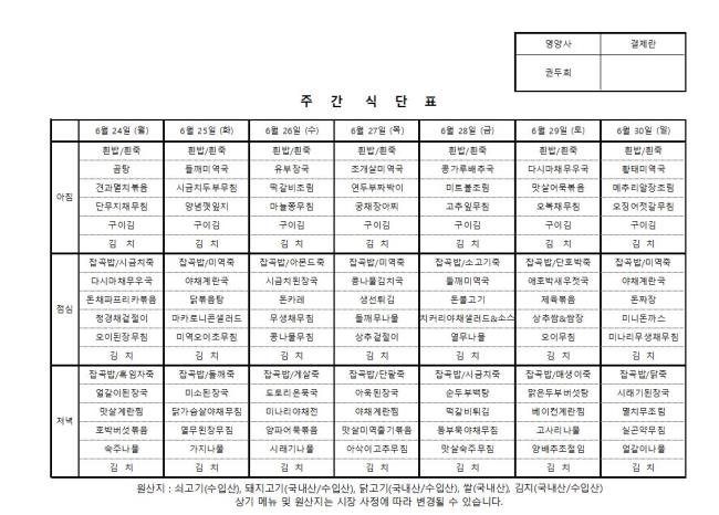 24년 6월 4주 식단