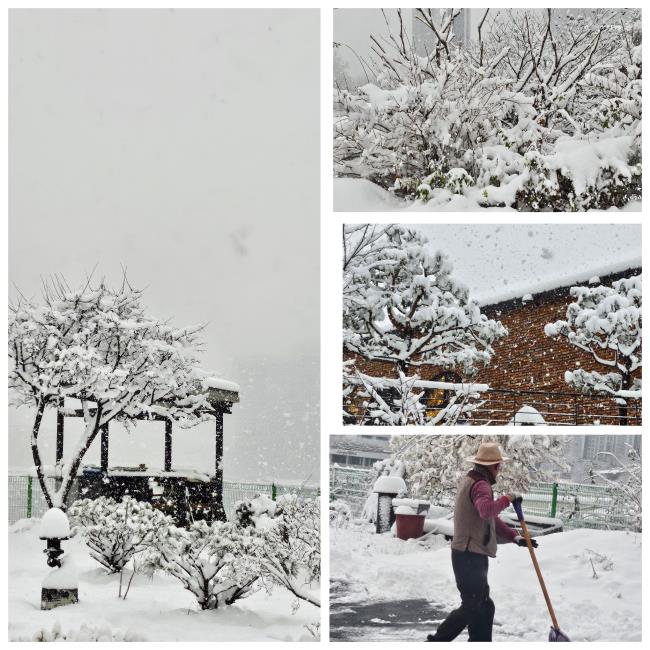 출입구와 통행로 및 주차장 제설 작업으로 힘들었지만