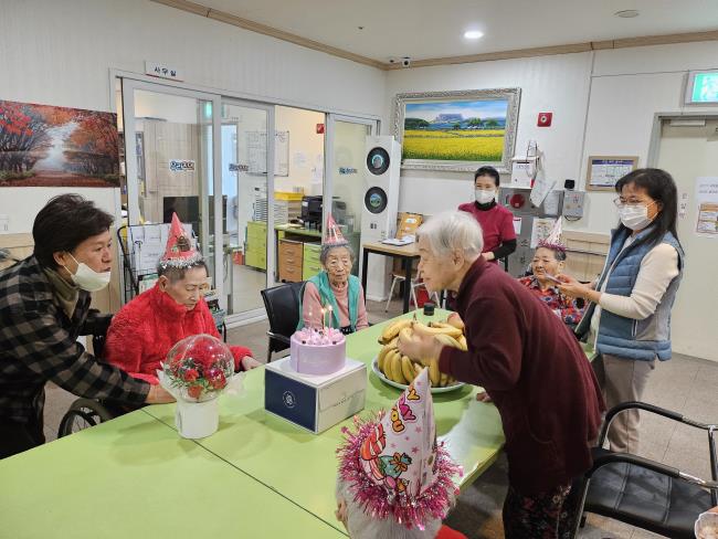 시간 되시는 생신 어르신 가족을 모시고 1월~3월 생신 어르신들의 생신 파티를 하였습니다.