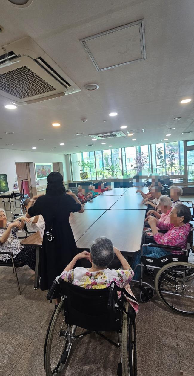 우리 어르신들 실 꿰기를 집중력 있게 수행 하시며,