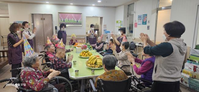 시간 되시는 생신 어르신 가족을 모시고 10월~12월 생신 어르신들의 생신 파티를 하였습니다.