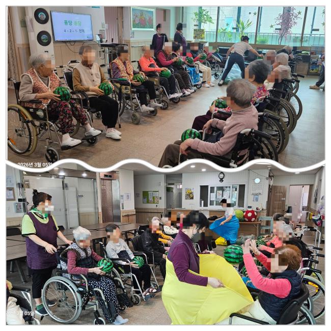 큰 바지 교구가 재미있게 생겼다며 어르신들이 즐거워 했답니다