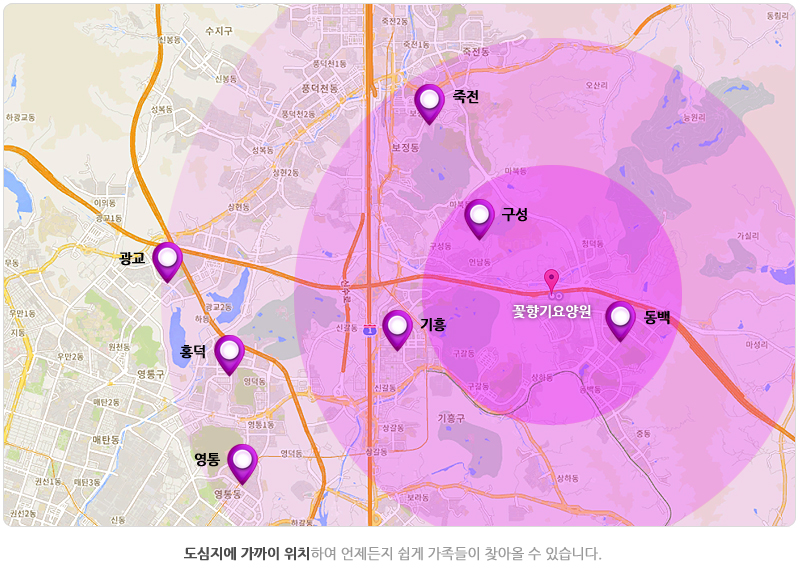 | 도심지 가까이 위치하면서도 자연을 가까이 느끼며, 확트인 전망을 감상하실 수 있습니다. | 넓은 주차장을 확보하여 언제든지 가족들이 편안하게 방문하실 수 있습니다. |