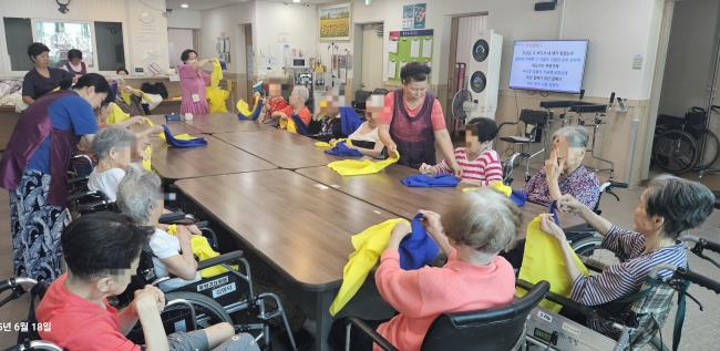 색색의 한삼을 파도치듯 흔들며 즐겁게 참여~~~