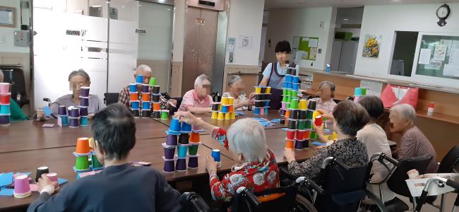 종이컵을 높이 높이 쌓아 누가 이길까요?~~~~이겨라 이겨라↗↗ 응원도 하고