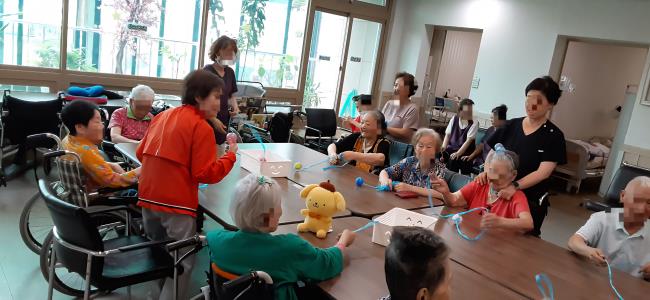 백업으로 종이컵을 전달하며 떨어뜨리지 않으려고 집중집중하는 우리 어르신들~~~