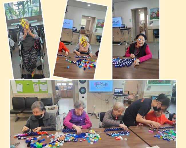 병뚜껑을 색깔대로 분류도 해보고 활동판에 올려 꾸며도 보았어요~~~